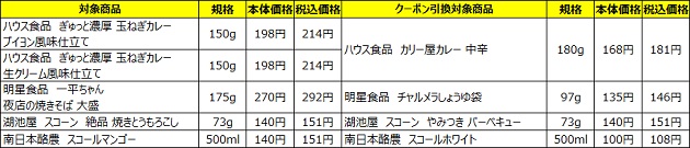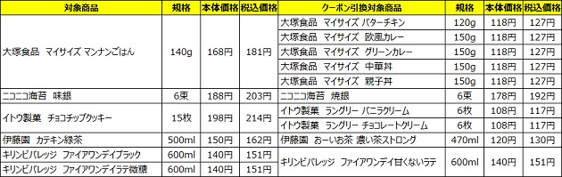 ※左が発券対象商品、右がクーポン引換対象商品です。