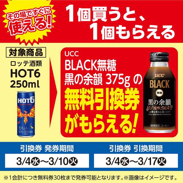 ※対象商品1個購入ごとに無料引換券が1枚発券されます。1会計につき無料券30枚まで発券可能となります。