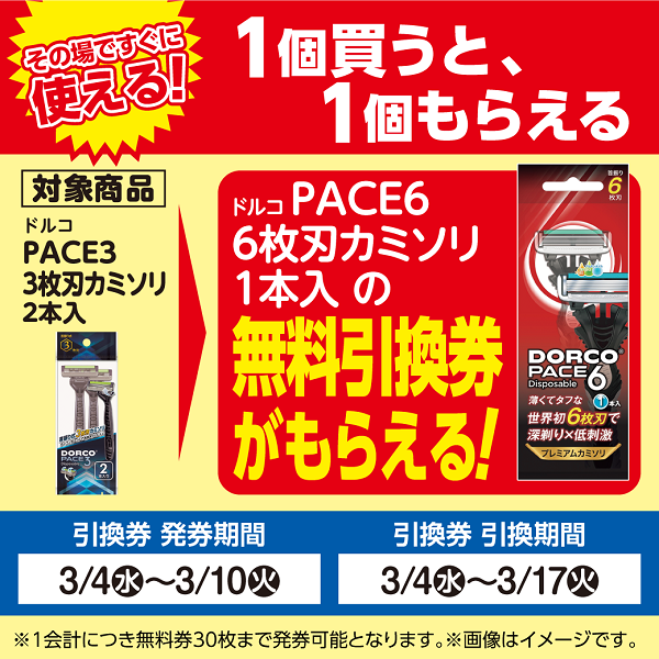2.ドルコ「PACE6 6枚刃カミソリ」が1個もらえる