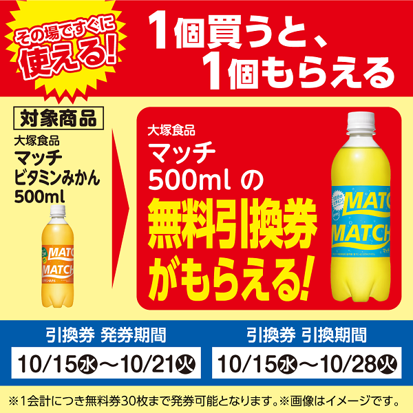 ※対象商品1個購入ごとに無料引換券が1枚発券されます。1会計につき無料券30枚まで発券可能となります。