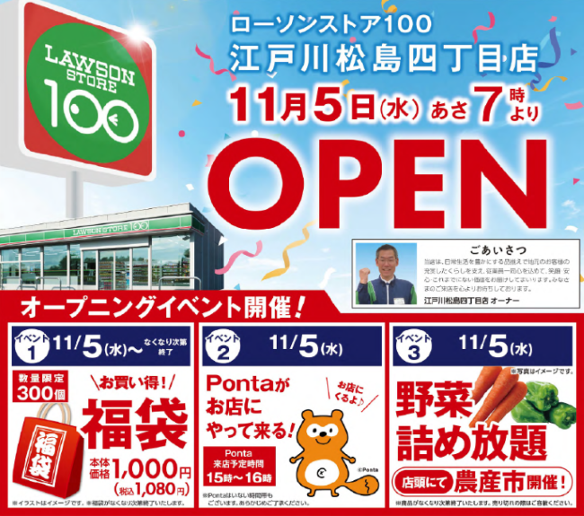 2025年11月5日(水)、ローソンストア100江戸川松島四丁目店がオープン!