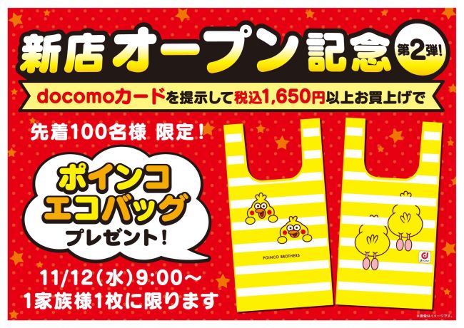 ■ 新店オープン記念第2弾!11月12日(水)よりポインコエコバッグを先着100名様限定でプレゼント!