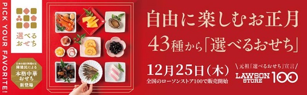 2025年12月18日予約が終わってもまだ間に合う! ローソンストア100『選べるおせち』全43種を 12月25日(木)より、いよいよ店頭販売開始