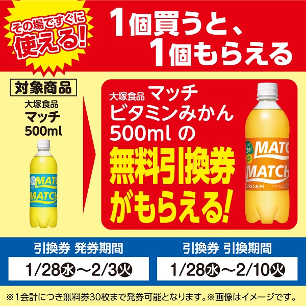 2026年01月28日大塚食品「マッチ ビタミンみかん」がもらえる!おトクなレシートクーポン 1月28日(水)から2月3日(火)まで