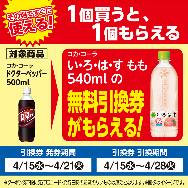 2026年04月15日コカ・コーラ「い・ろ・は・す もも」がもらえる!おトクなレシートクーポン 4月15日(水)から4月21日(火)まで