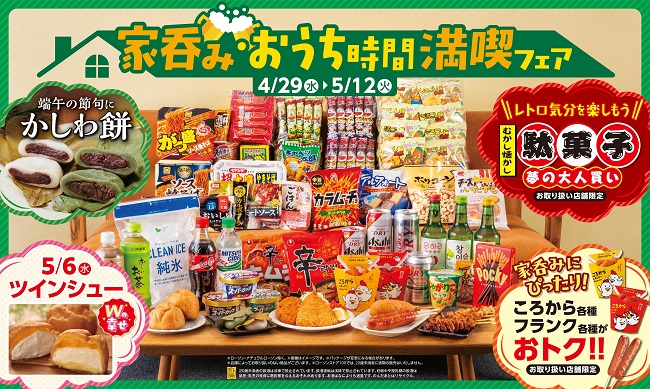 いよいよ待ちに待ったゴールデンウィーク!ローソンストア100では、4月29日(水)から5月12日(火)まで、連休中のおうち時間をより楽しく、おトクに彩る「家呑み・おうち時間満喫フェア」を開催いたします。